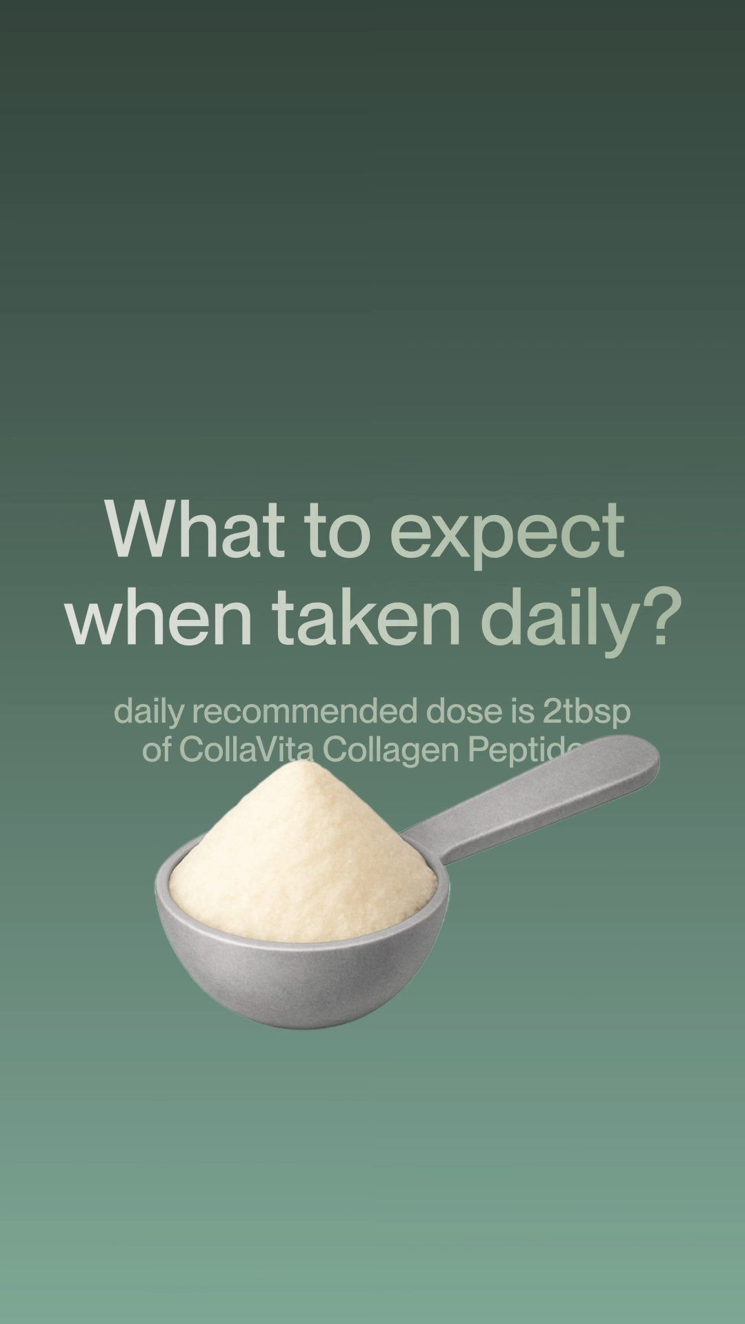 Once daily, add one scoop (10g) of CollaVita Collagen to hot or cold liquids (water, coffee, tea, smoothies, etc.) and stir until completely dissolved. It leaves no taste or odor, meaning it can be easily added to any beverage or food.